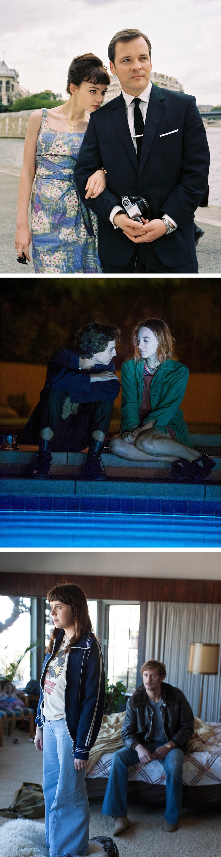 From top: Carey Mulligan and Peter Sarsgaard in An Education, 2009; Saoirse Ronan and Timothee Chalamet in Lady Bird, 2017; Bel Powley and Alexander Skarsgard in The Diary of a Teenage Girl, 2015